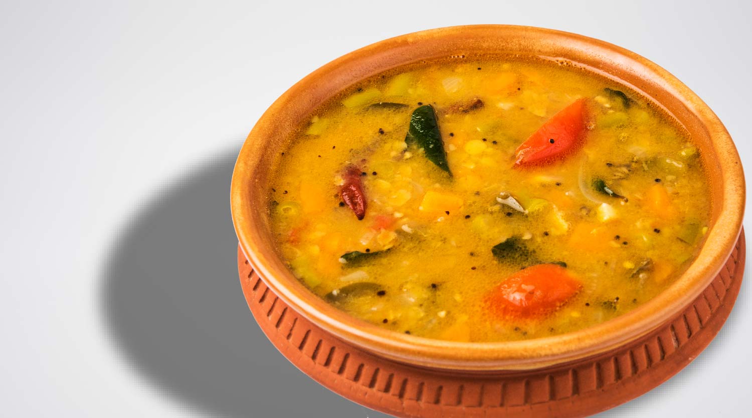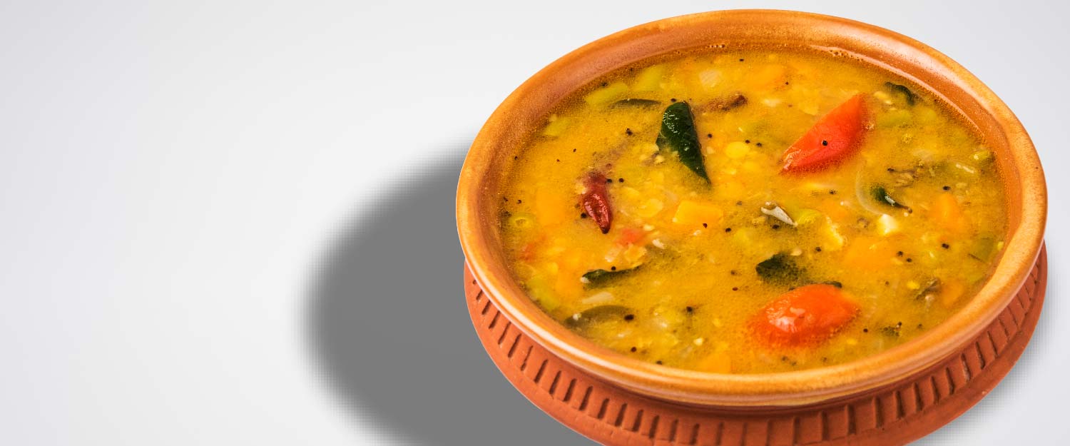 Serve Sambhar hot with some crispy chips. The remaining Masala Powder can be stored in an air-tight container for future use.